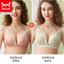 猫人旗舰专卖 哺乳内衣聚拢防下垂前开扣夏季薄款孕妇怀孕期大码睡觉可穿文胸女 新款性感蕾丝【瓦陶+浅米】 M