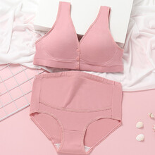 梦美美孕妇内衣套装怀孕期高腰内裤纯棉大码夏季薄款前开扣背心胸罩哺乳文胸 豆沙 1件套 8802款 L